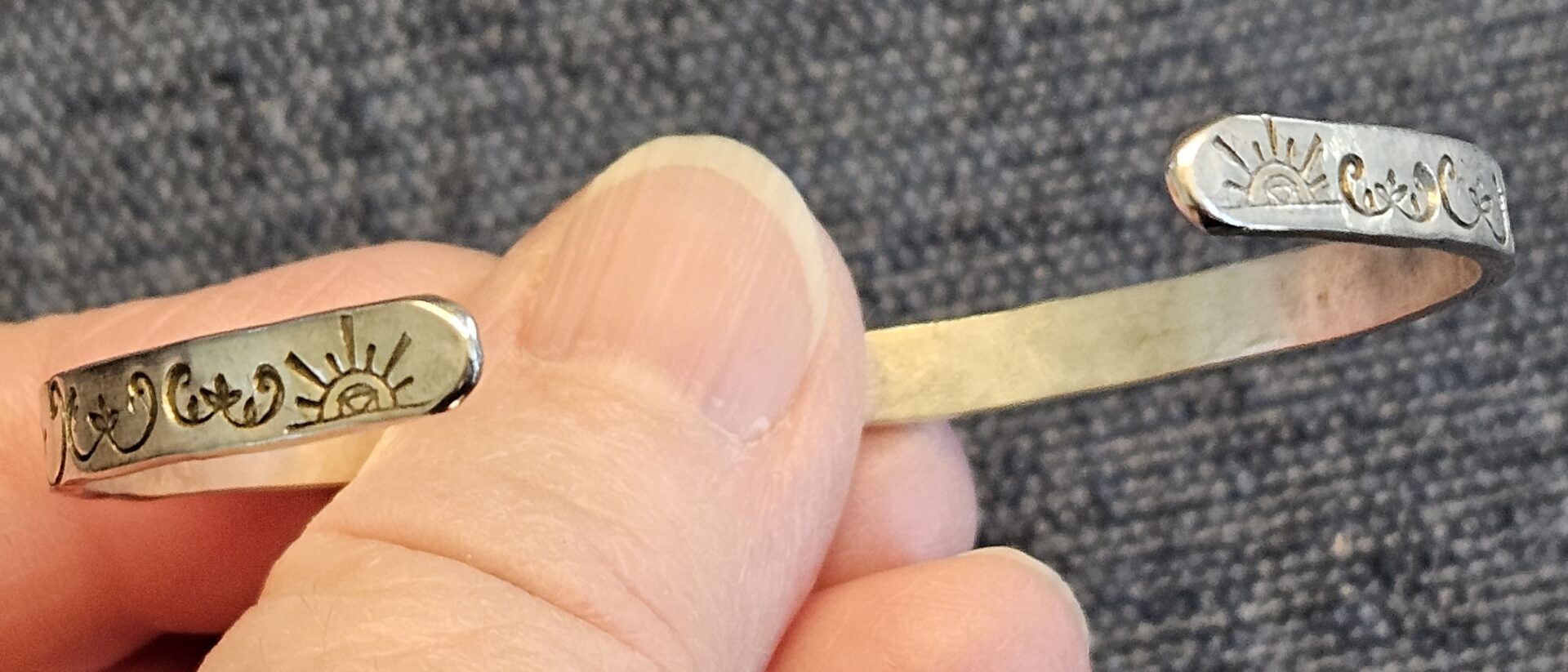 Narrow Sterling Silver Hand Stamped Cuff – Size 6.2